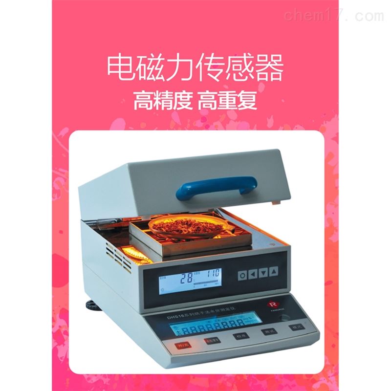 DHS16系列高精度卤素水分测定仪,是水分仪是一种新型的快速水分检测仪器,采用先进的电磁力平衡原理的高精度电子天平,辅以高性能温控装置以及环状加热管和镜面反射器,能快速、稳定、准确地测定试样的水分含量。